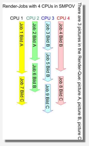 no tiling. All renderings werer distributed with SMPOV, timing